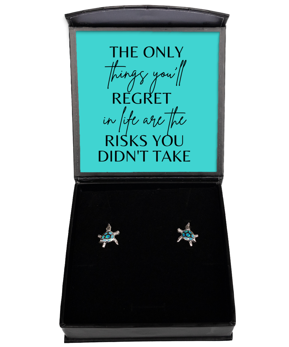 - Each Earrings of Positivity: Dream, Believe, Achieve Opal Turtle Earrings as a Gift Turtle Earring is fitted with a brilliant blue fire opal, a precious stone that offers incredible shine and eye-catching color.