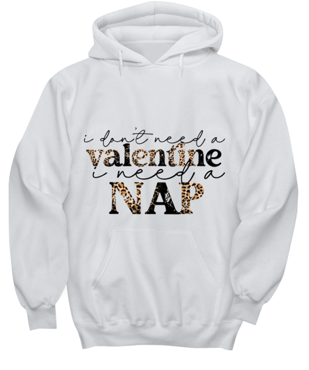 I don't need a valentine, I need a nap, white hoodie. Model 60053