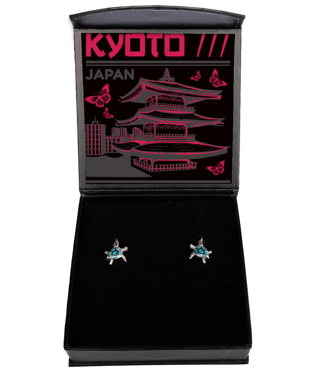 - Each Kyoto Opal Turtle Earrings Gifts Turtle Earring is fitted with a brilliant blue fire opal, a precious stone that offers incredible shine and eye-catching color.
