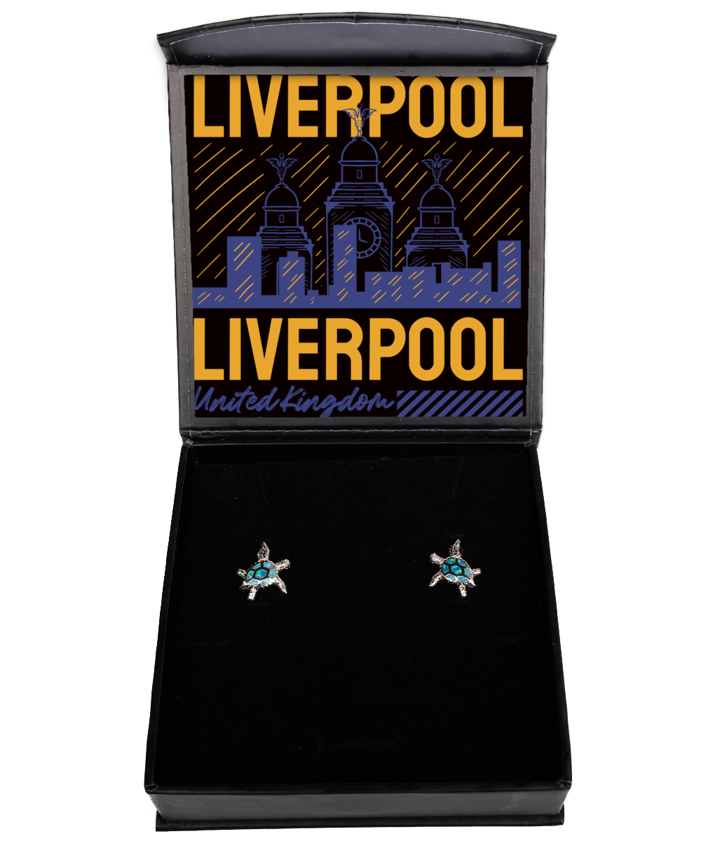 - Each Liverpool Opal Turtle Earrings Gifts Turtle Earring is fitted with a brilliant blue fire opal, a precious stone that offers incredible shine and eye-catching color.