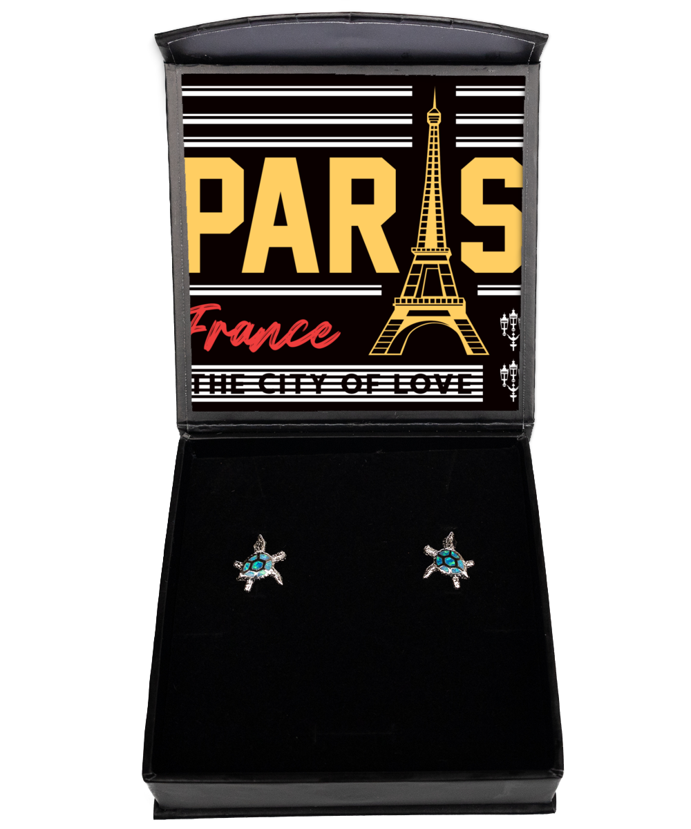 - Each Paris Opal Turtle Earrings Gifts Turtle Earring is fitted with a brilliant blue fire opal, a precious stone that offers incredible shine and eye-catching color.