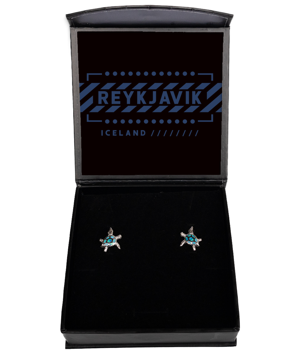 - Each Reykjavik Opal Turtle Earrings Gifts Turtle Earring is fitted with a brilliant blue fire opal, a precious stone that offers incredible shine and eye-catching color.