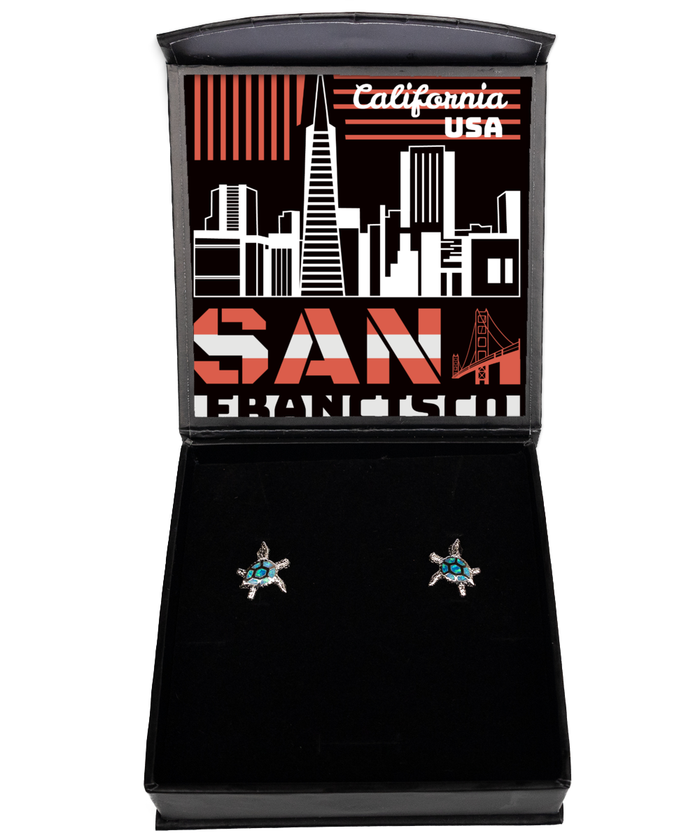 This San Francisco Opal Turtle Earrings Gifts Opal Turtle Earring is the perfect gift for the person who brings you happiness. Our Opal Turtle earrings will turn heads thanks to the magnificent color of the blue fire opal and charming turtle design. Made of .925 sterling silver metal, this necklace features a single turtle that will surely brighten up your day! This item arrives gift-ready in our custom packaging with a lovely message card. Certificate of Authenticity Card - Features the GearBubble Seal Of Authenticity, which certifies that the jewelry is handmade and crafted in genuine .925 sterling silver.