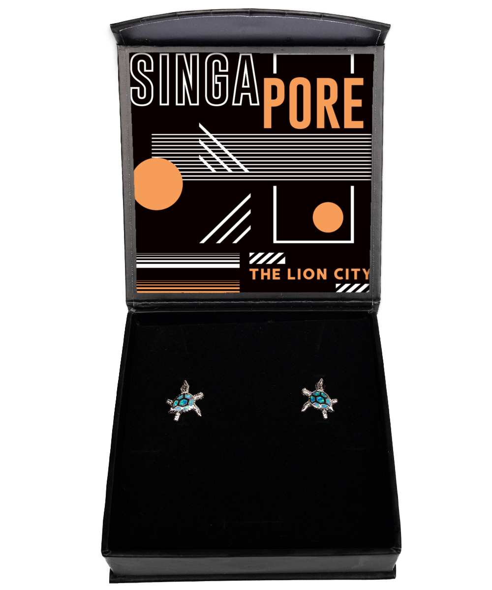 - Each Singapore Opal Turtle Earrings Gifts Turtle Earring is fitted with a brilliant blue fire opal, a precious stone that offers incredible shine and eye-catching color.